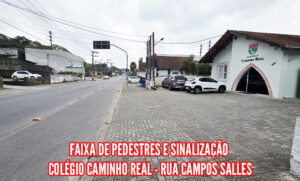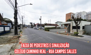 Histórico: A AMAG recebeu a solicitação para ajudar na implantação de Faixa de Pedestres em frente ao Colégio Caminho Real , localizado na Rua Campos Salles, 192. A solicitação partiu da diretoria da escola e pais de alunos, os quais já haviam tentado essa sinalização sem êxito, e que dará mais segurança aos alunos e seus pais.