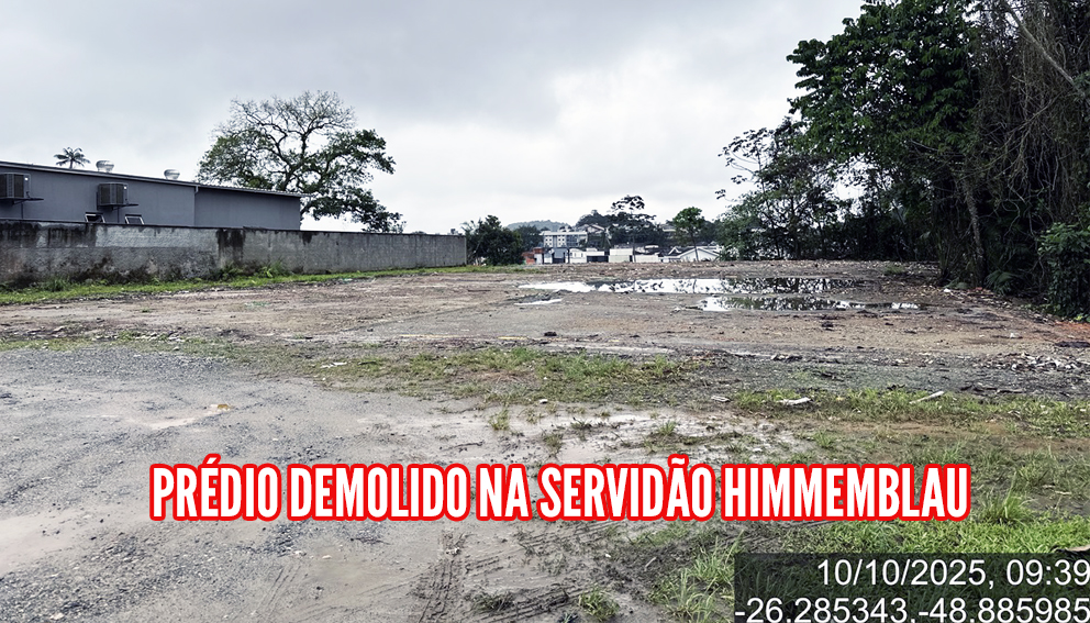 Histórico: Um prédio em péssimo estado de conservação, localizado na Servidão Himmemblau, 4050, final da rua, está tomado por lixo e não possui muro. ISso coloca em risco moradores e as crianças que brincam nessa rua, pois acabam indo até o local. Também há relatos de que usuários de drogas acabam indo até lá para consumo.